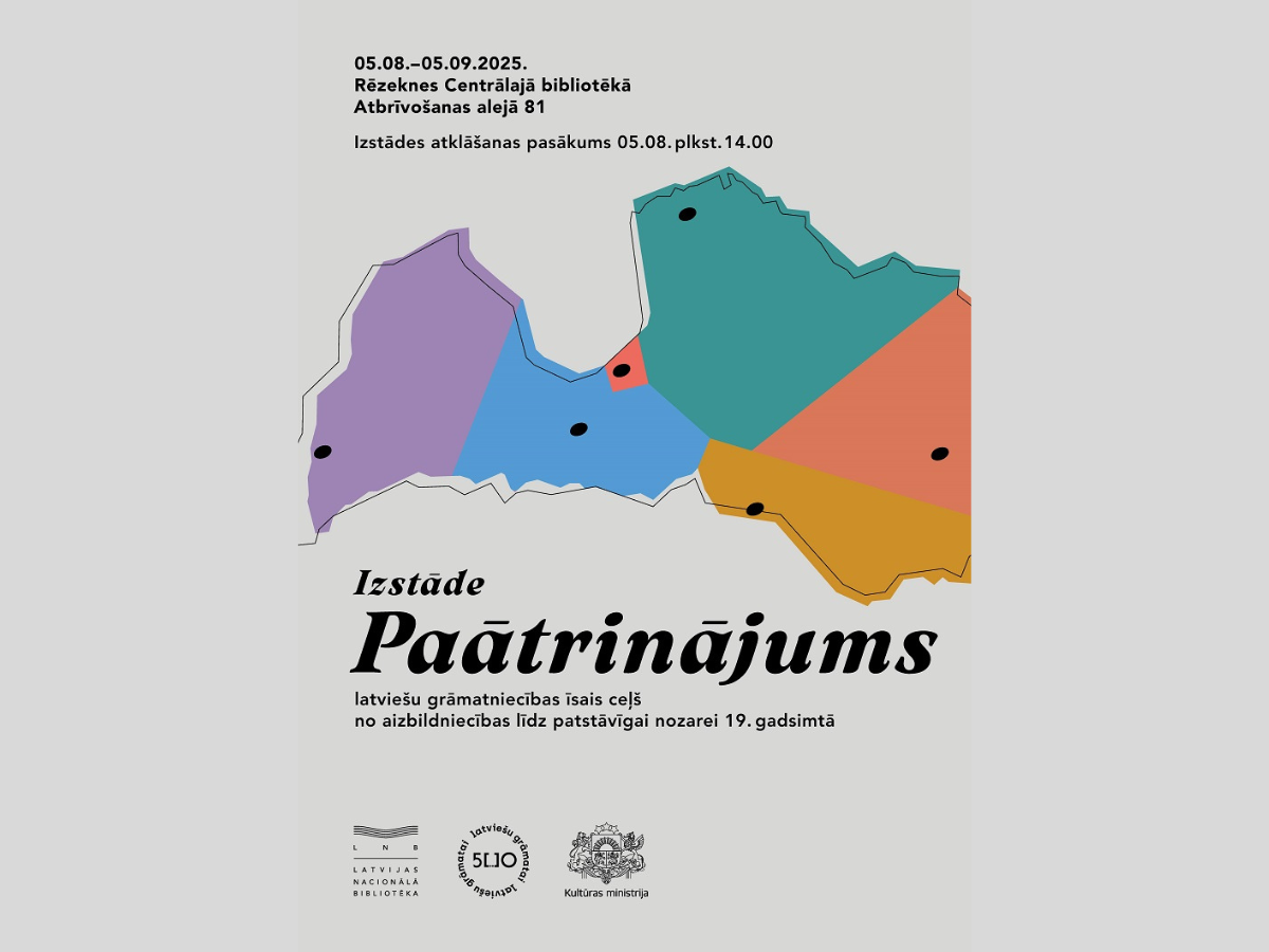 Sagaidot latviešu grāmatas piecsimtgadi, ciklā "Latviešu grāmatai 500" 2025. gada 5. augustā plkst. 14.00 Rēzeknes Centrālās bibliotēkas (RCB) 3. stāvā gaidāma Latvijas Nacionālās bibliotēkas izstādes “Paātrinājums: latviešu grāmatniecības īsais ceļš no aizbildniecības līdz patstāvīgai nozarei 19. gadsimtā” atklāšana.