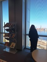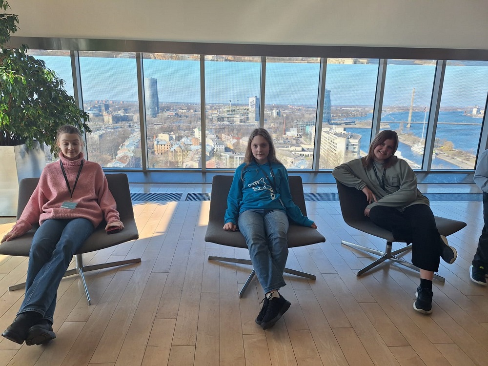 Pie Latvijas Nacionālās bibliotēkas ciemiņus no Rēzeknes sagaidīja divi Raiņi, savukārt bibliotēkā – vairākas interesantas izstādes. Jaunietes izpētīja aktuālo literatūru bērniem un jauniešiem Bērnu literatūras centrā, uzzināja, ko var darīt klusuma istabā, apskatīja Krišjāņa Barona Dainu skapi. Protams, neizpalika arī ceļojums uz LNB 12. stāvu, lai apskatītu Rīgas panorāmu.
