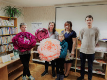Sanākušajiem bija iespēja apskatīt arī rakstnieces 115. jubilejai veltīto grāmatu izstādi “Annas Sakses ziedu pasaku pasaulē” un ziedu dekorācijas no bibliotēkas apmeklētājas privātās kolekcijas.
