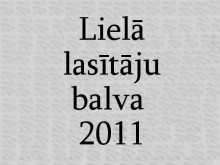 Lielā lasītāju balva 2011 Arī šogad nevalstiskā organizācija „Lauku bibliotēku atbalsta biedrība” bija izsludinājusi ikgadējo konkursu par Latvijas bibliotēkās visvairāk lasītajām grāmatām, kas izdotas iepriekšējā (šoreiz – 2010.) gadā.