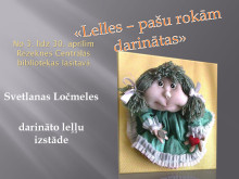 “Lelles – pašu rokām darinātas” No 2018. gada 3. līdz 30. aprīlim Rēzeknes Centrālās bibliotēkas lasītavā ir skatāma rēzeknietes, pirmsskolas izglītības iestādes “Laimiņa” skolotājas Svetlanas Ločmeles darināto leļļu izstāde “Lelles – pašu rokām darinātas”.