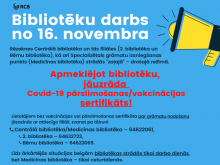 Lietotājiem bez vakcinācijas vai pārslimošanas sertifikāta par grāmatu nodošanu jāsazinās ar attiecīgo filiāli, zvanot pa tālruni: Centrālā bibliotēka/Medicīnas bibliotēka – 64622061, 2. bibliotēka – 64632723, Bērnu bibliotēka – 64623069.