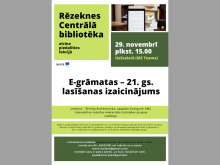 2021. gada 29. novembrī plkst. 15.00 Rēzeknes Centrālā bibliotēka aicina uz tiešsaistes lekciju „E-grāmatas – 21. gs. lasīšanas izaicinājums”. Pasākums notiks projekta „Europe Direct Austrumlatgale” ietvaros, atbalstot Eiropas Savienības digitālo kursu.