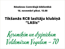 RCB lasītāju klubiņā “LASIs” 16. novembrī plkst. 15.00 runāsim par izcilā novadnieka daiļrades un dzīves ceļu, lasīsim jubilāra dzeju no bibliotēkas krājumā pieejamajām V. Vogula dzejas grāmatām.