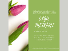 2019. gada 8. martā plkst. 13.00 Latvijas Neredzīgo bibliotēkas Rēzeknes filiālbibliotēka aicina uz tikšanos ar radošu sievieti, dzejnieci, aktrisi, dziesmu autori un izpildītāju, žurnālisti Olgu Meirāni.