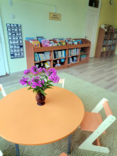 Ierīkots bērnu stūrītis ar spēlēm, zīmēšanas un krāsošanas piederumiem, rotaļlietām.