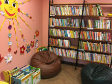 Ierīkots bērnu stūrītis ar spēlēm, zīmēšanas un krāsošanas piederumiem, rotaļlietām.