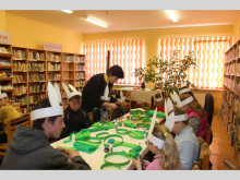 Darbnīcā bērni grieza, līmēja, lipināja, veidojot dekoratīvus Lieldienu zaķus un apsveikuma atklātnes, ar ko svētkos iepriecināt savus tuvākos. Darinot šos darbus, bērni ne tikai iepriecina sevi un tuviniekus, bet arī attīsta pirkstu veiklību, radošo domāšanu un sekmē lietderīgu brīvā laika pavadīšanu bibliotēkā. Ejot mājās, bērni savus darbus paņēma līdzi, jo arī tur jārada Lieldienu noskaņa.