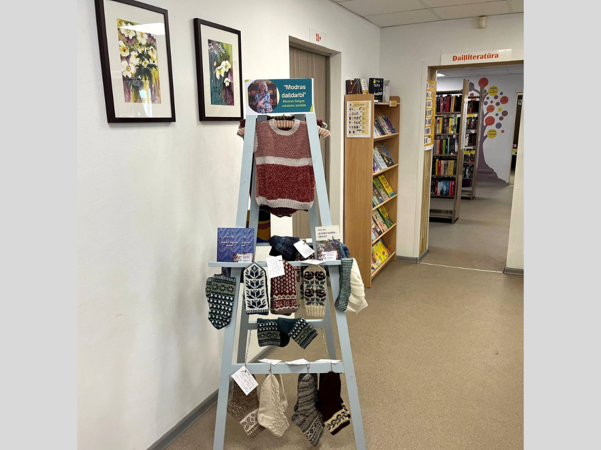 2. bibliotēkā skatāma rokdarbu izstāde “Modras daiļdarbi”