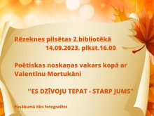Rēzeknes 2. bibliotēkā 2023. gada 14. septembrī plkst.16.00 Dzejas dienu ietvaros būs iespēja iepazīties ar rēzeknieti Valentīnu Mortukāni un viņas rakstīto dzeju.