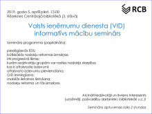 2019. gada 5. aprīlī plkst. 13.00 Rēzeknes Centrālajā bibliotēkā notiks Valsts ieņēmumu dienesta (VID) informatīvs mācību seminārs.