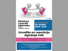 2021. gada 29. oktobrī projekta „Europe Direct Austrumlatgale” ietvaros  Rēzeknes Centrālā bibliotēka aicināja uz tiešsaistes lekciju „Uzvedība un reputācija digitālajā vidē”.