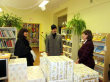 Foto: www.rezeknesbiblioteka.lv 9. janvārī tēvs Viktors Bērnu bibliotēkas lasītājiem pasniedza Rēzeknes Vissvētākās Dievmātes piedzimšanas pareizticīgo baznīcas draudzes Ziemassvētku dāvanu – 205 grāmatas.