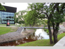 Foto: www.rezeknesbiblioteka.lv N. Rancāna ielā gājēju tilts pār upi iedzīvotājiem ļauj nokļūt no pilsētas centra uz Vipingu. Šo tiltu rēzeknieši dēvē par “slimnīcas tiltu”. Lai arī nogāze uz šo tiltu ir stāva, tā ir iecienīta pastaigu vieta.