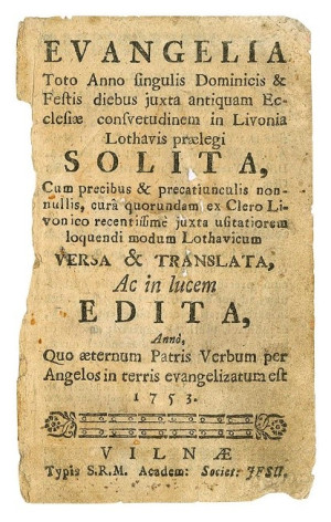 Grāmata “Evangelia toto anno..” jeb “Evaņģēliji visam gadam” (Viļņa, 1753)