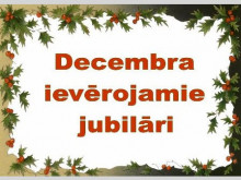 Decembrī apaļa jubileja aprit Vairai Vīķei-Freibergai (75), Modrim Zihmanim (85), Andrejam Upītim (135), Zentai Mauriņai (115), Pēterim Jurciņam (80), Jānim Ziemeļniekam (115) un Edvīnam Raupam (50).