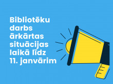 Bibliotēkās nenotiek pasākumi, nav atļauta pulcēšanās brīvā laika pavadīšanai.
