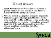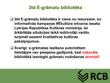 Rēzeknes Centrālās bibliotēkas abonementa vadītāja Zita Gorsvāne bija sagatavojusi prezentāciju, kurā iepazīstināja ar e-grāmatu lasīšanas iespējām publisko bibliotēku lasītājiem un pastāstīja, kā ikviens no mums var kļūt par e-grāmatu lasītāju. Prezentācijas slaidus piedāvājam noskatīties zemāk.