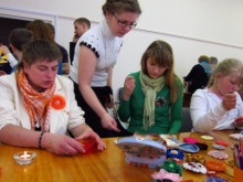 Radošajā darbnīcā savukārt tika apgūtas mākslīgo ziedu izgatavošanas prasmes. Florists Jevģēnijs rādīja, kā pagatavot ziedus no papīra, bet auduma ziedu veidošanas un pērļošanas prasmes ierādīja „JAČa” speciāliste darbā ar jauniešiem Jekaterina Moisejeva un bibliotekāre Ruta Suseja.