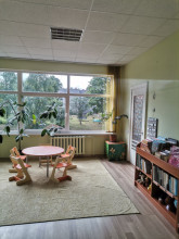 Ierīkots bērnu stūrītis ar spēlēm, zīmēšanas un krāsošanas piederumiem, rotaļlietām.