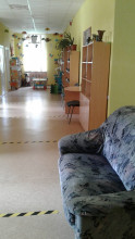 Ierīkots bērnu stūrītis ar spēlēm, zīmēšanas un krāsošanas piederumiem, rotaļlietām.