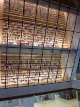 Aiz augstās, slīpās stikla sienas atrodas milzu grāmatu plaukts 5 stāvu augstumā, kuru piepilda tautas dāvinātās grāmatas. Skatoties uz iespaidīgo grāmatu sienu, maltēnieši bija lepni, ka arī viņu dāvātās grāmatiņas ir starp tām, kas Grāmatu draugu ķēdē no rokas rokā ceļoja uz šo mājvietu.