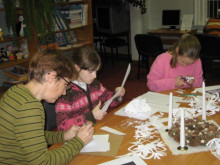 Radošajā darbnīcā „Sniegpārsliņu virpulī”, ļaujoties bērnu fantāzijai, sniegpārsliņu darbnīca pārvērtās par jauku nodarbi pirmssvētku laikā. Skaistie darbiņi pēc tam rotāja bibliotēkas telpas.